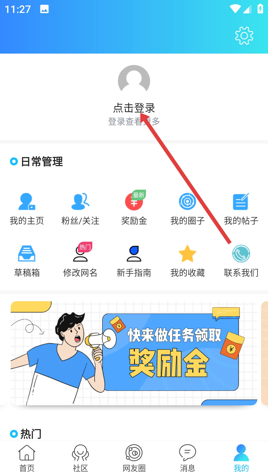 在【我的】页面找到并点击【点击登录】按钮,即可进入登录流程。