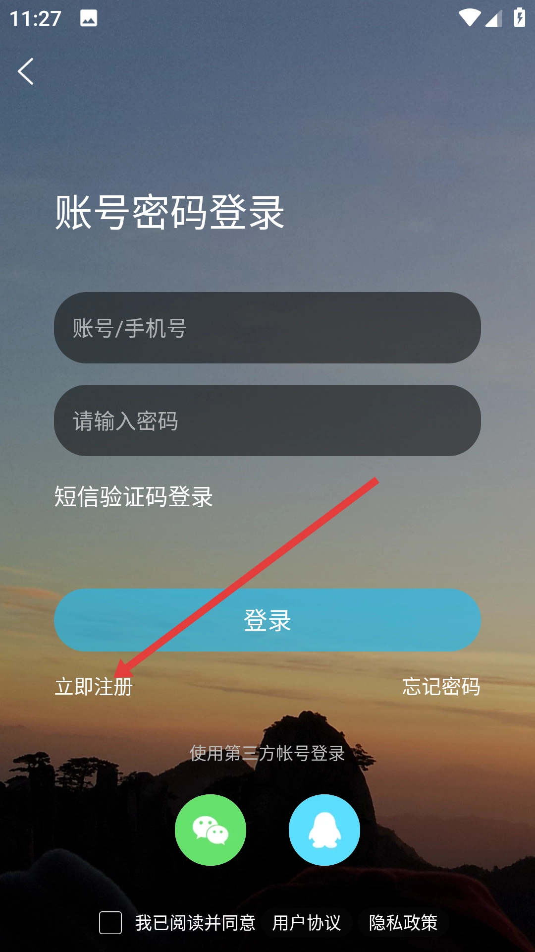 在登录界面点击【立即注册】按钮,进入注册流程。