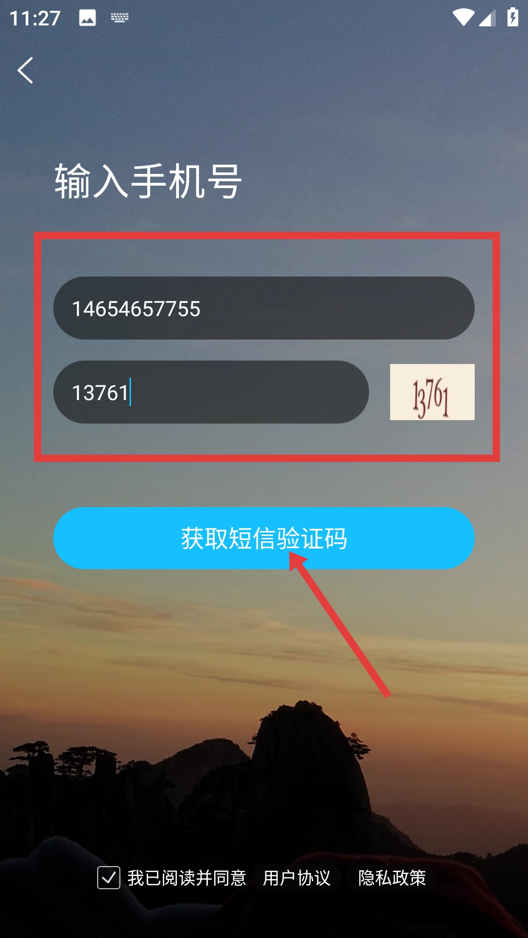 在注册页面填写手机号与验证码后,点击【获取短信验证码】按钮,即可完成注册前的验证环节。