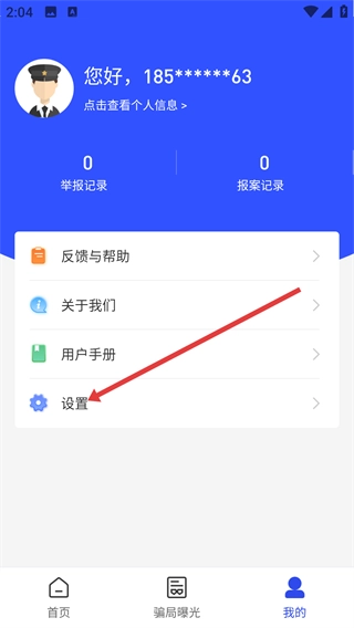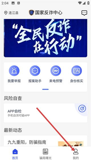 在国家反诈中心首页,点击右下角的【我的】选项,就能进入个人中心页面。