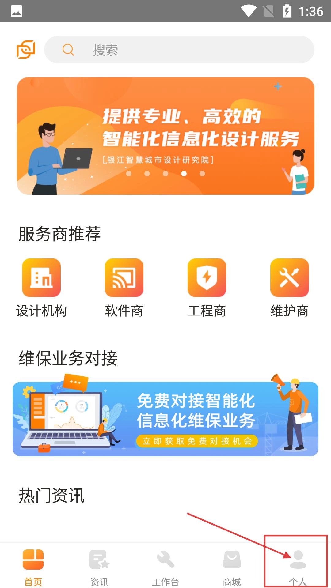 进入主界面后,点击右下角的【个人】选项,就能进入个人相关功能界面,这样就可以进行登录或注册操作了。