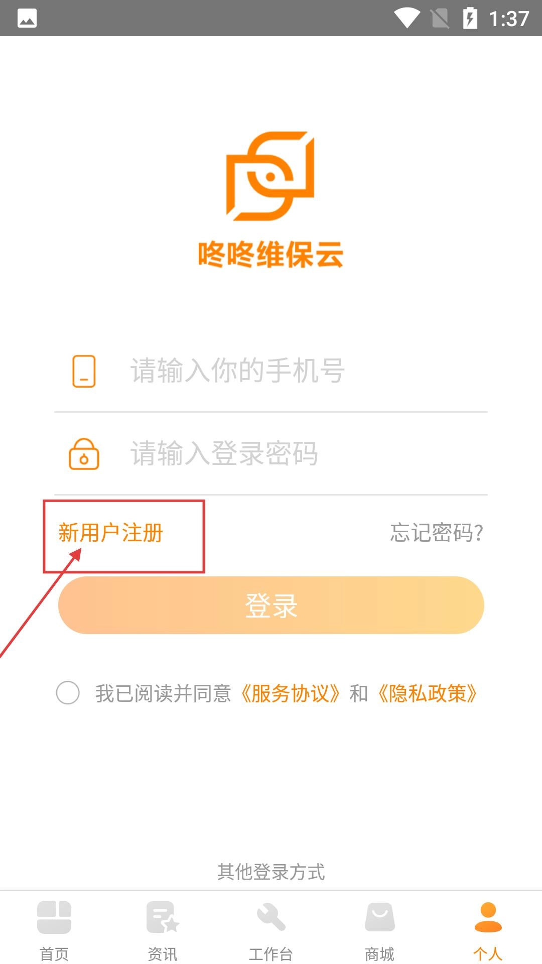 要是还没有注册账号,在登录页面点击【新用户注册】按钮,就能进入注册步骤,这样后续登录后就能使用相关功能了。