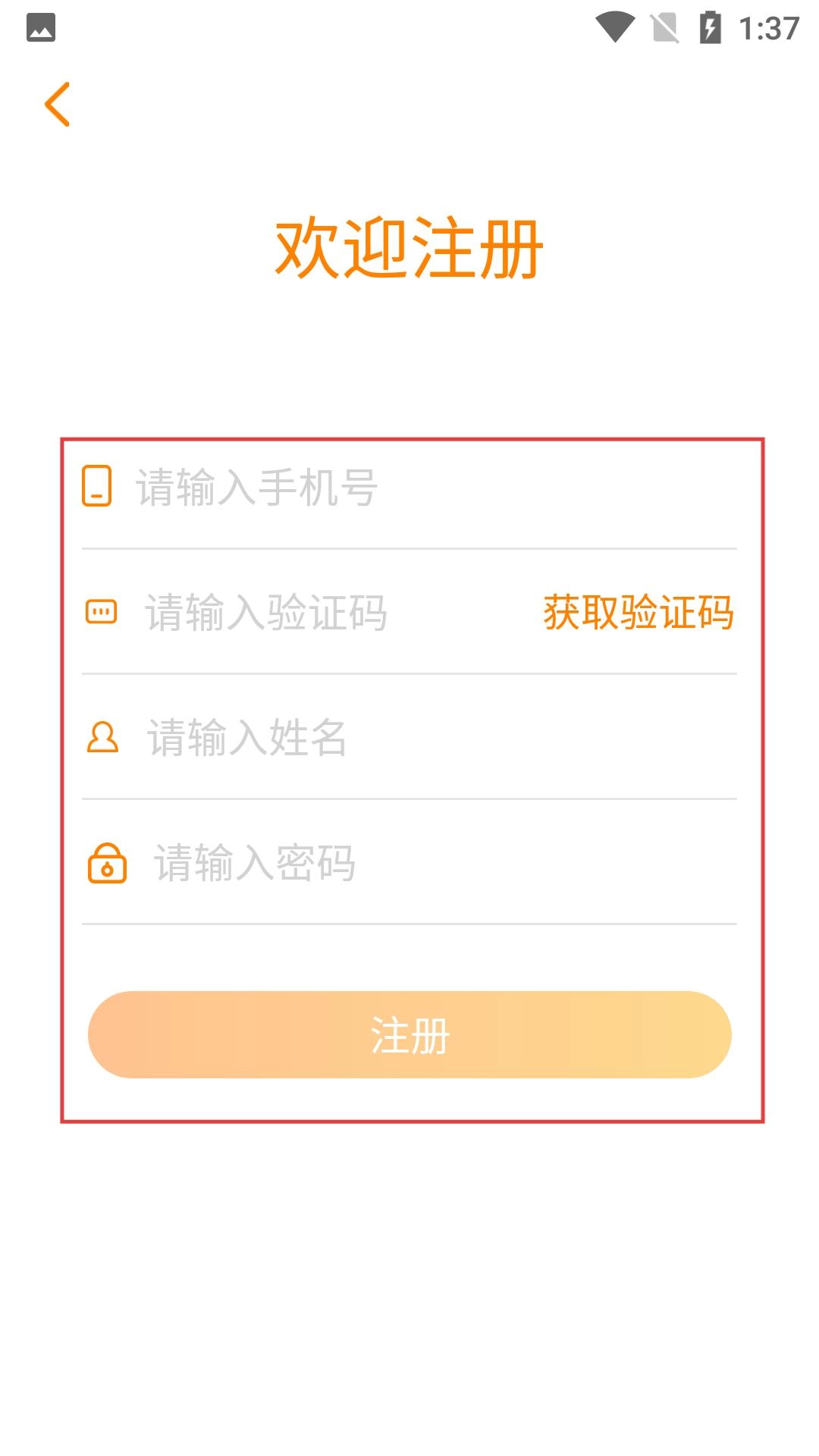 注册账号时,请按顺序填写【手机号】【验证码】【姓名】与【密码】,所有信息填写完毕后,点击【注册】按钮就能完成账号的注册流程。