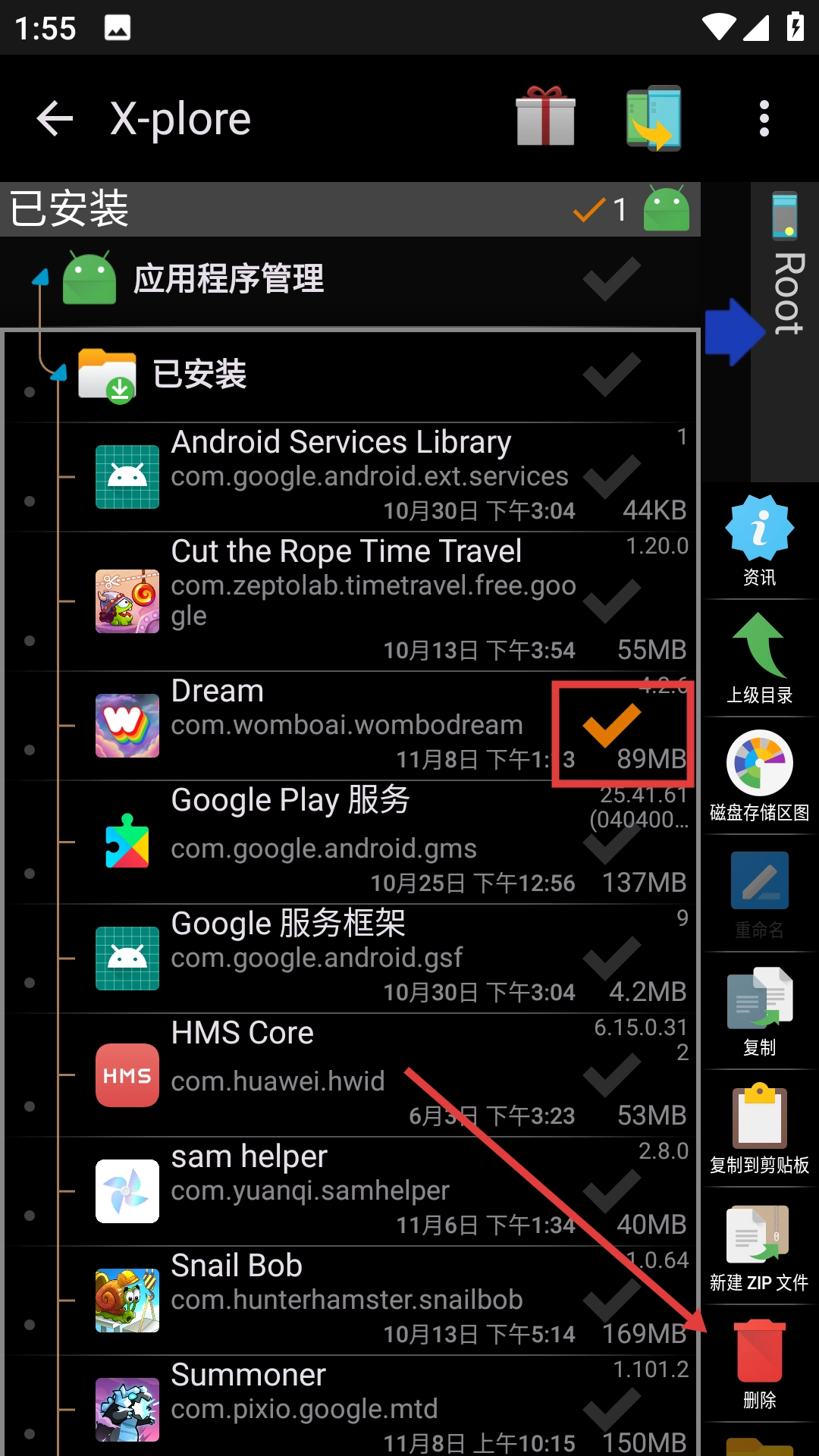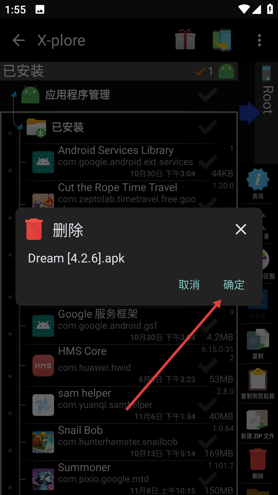 在应用程序管理页面找到需要操作的应用安装包,例如【Dream[4.2.6].apk】。