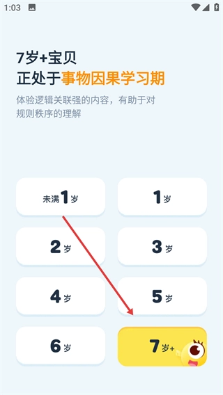 挑选合适的年龄阶段,例如【7岁+】,即可进入该年龄对应的内容页面。