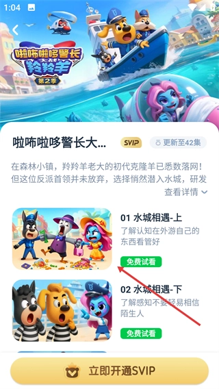 在动画列表页面挑选具体的剧集,比如【01水城相遇-上】,接着点击【免费试看】按钮,就能启动动画观看了。