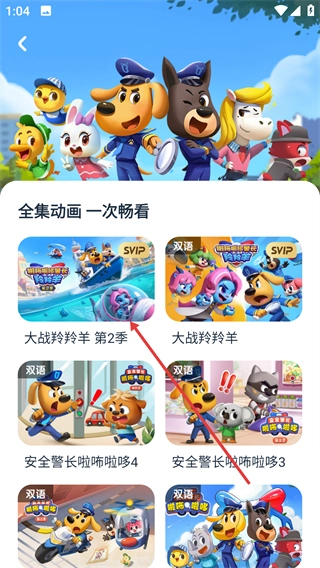 在内容详情页选定目标动画,例如《大战羚羚羊第2季》,接着进入动画列表页面。