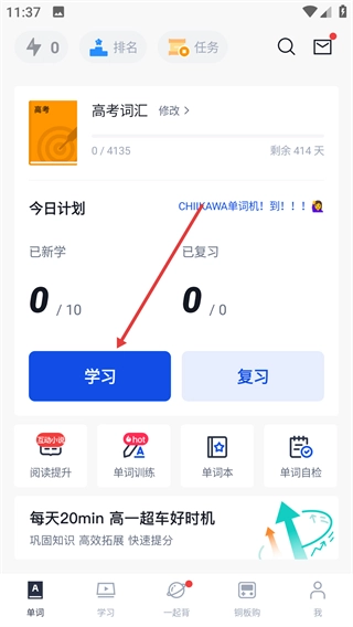 点击【学习】按钮,进入单词学习页面。