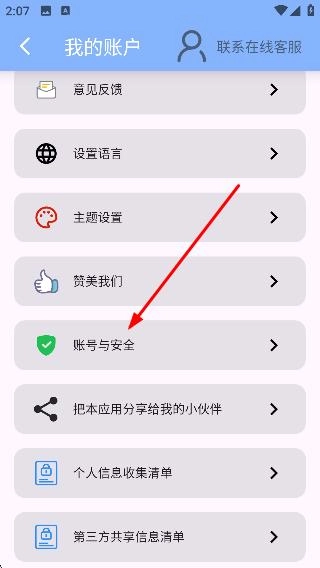 你可以在账户页面找到【账号与安全】选项并点击,随后就能进入对应的账号与安全页面。