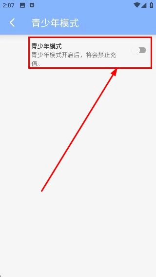 进入青少年模式设置页面后,找到并打开【青少年模式】的开关,这样就能完成青少年模式的开启配置了。