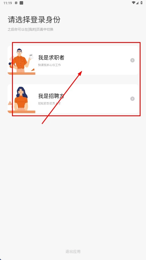 请选择【我是求职者-身份选项】,随后进入求职相关页面。