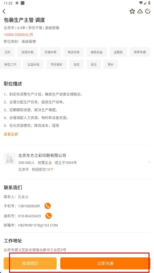 找到目标职位【包装生产主管调度-职位名称】后点击该职位,以查看其详细信息。