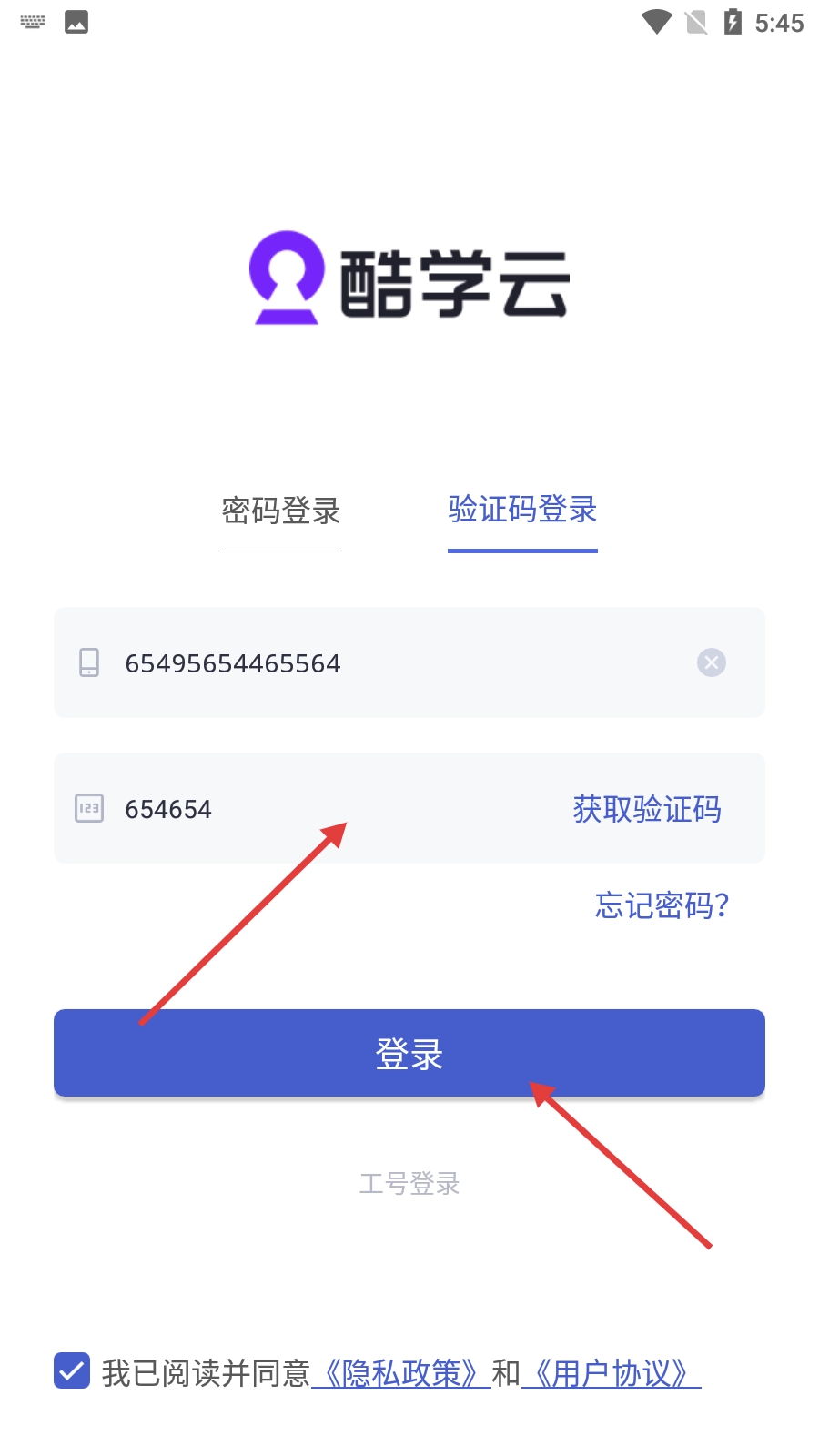 输入验证码后,点击【登录】按钮,就能完成酷学云的登录流程。