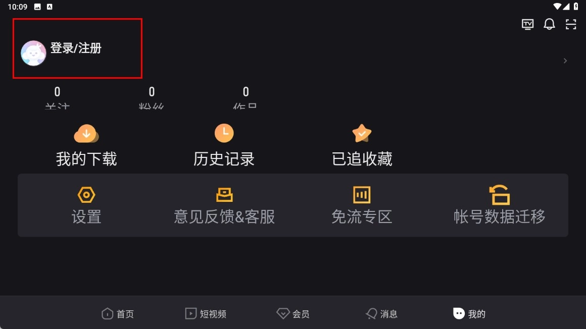 在个人中心页面,点击【登录/注册】功能按钮后,会弹出登录注册窗口。