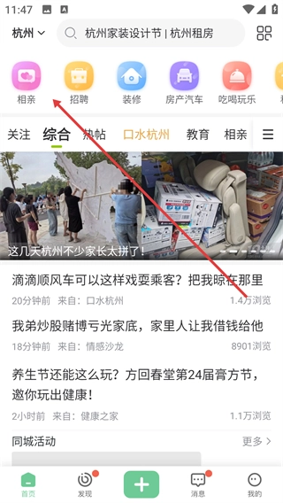 在首页点击【相亲】功能入口,进入相亲板块。
