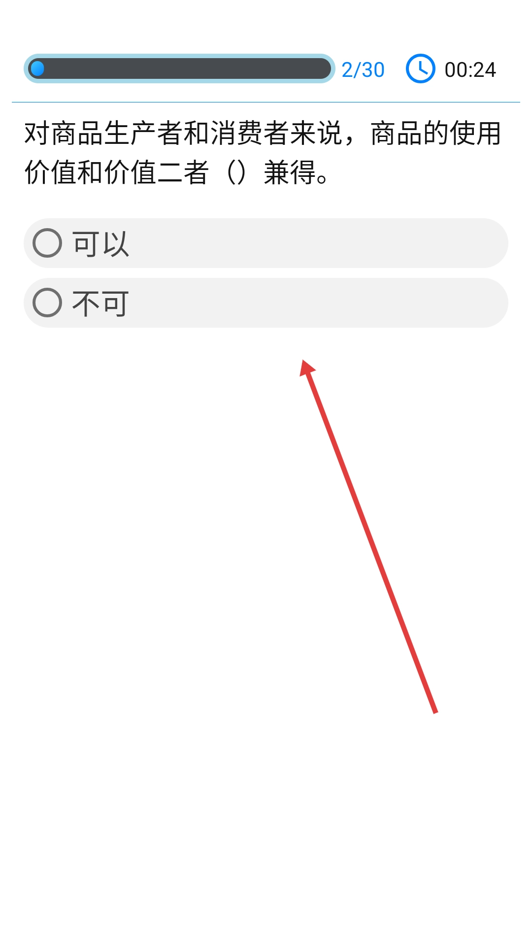 在答题界面找到“对于商品生产者和消费者而言,商品的使用价值与价值能否二者兼得”这道题目,然后挑选对应的答案选项。