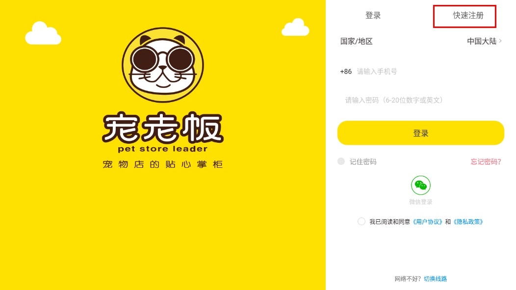 在登录页面,点击【快速注册】选项,即可进入注册环节。