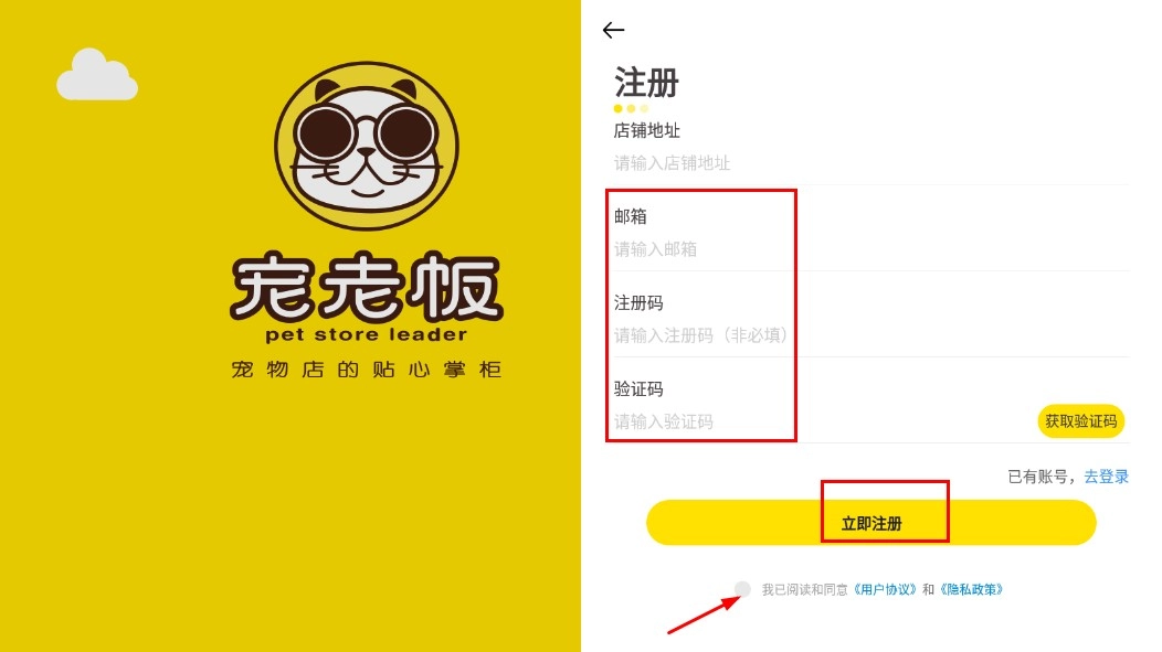 继续向下滑动界面,填写邮箱、注册码、验证码等相关信息,勾选同意协议后,点击【立即注册】按钮,即可完成注册流程。