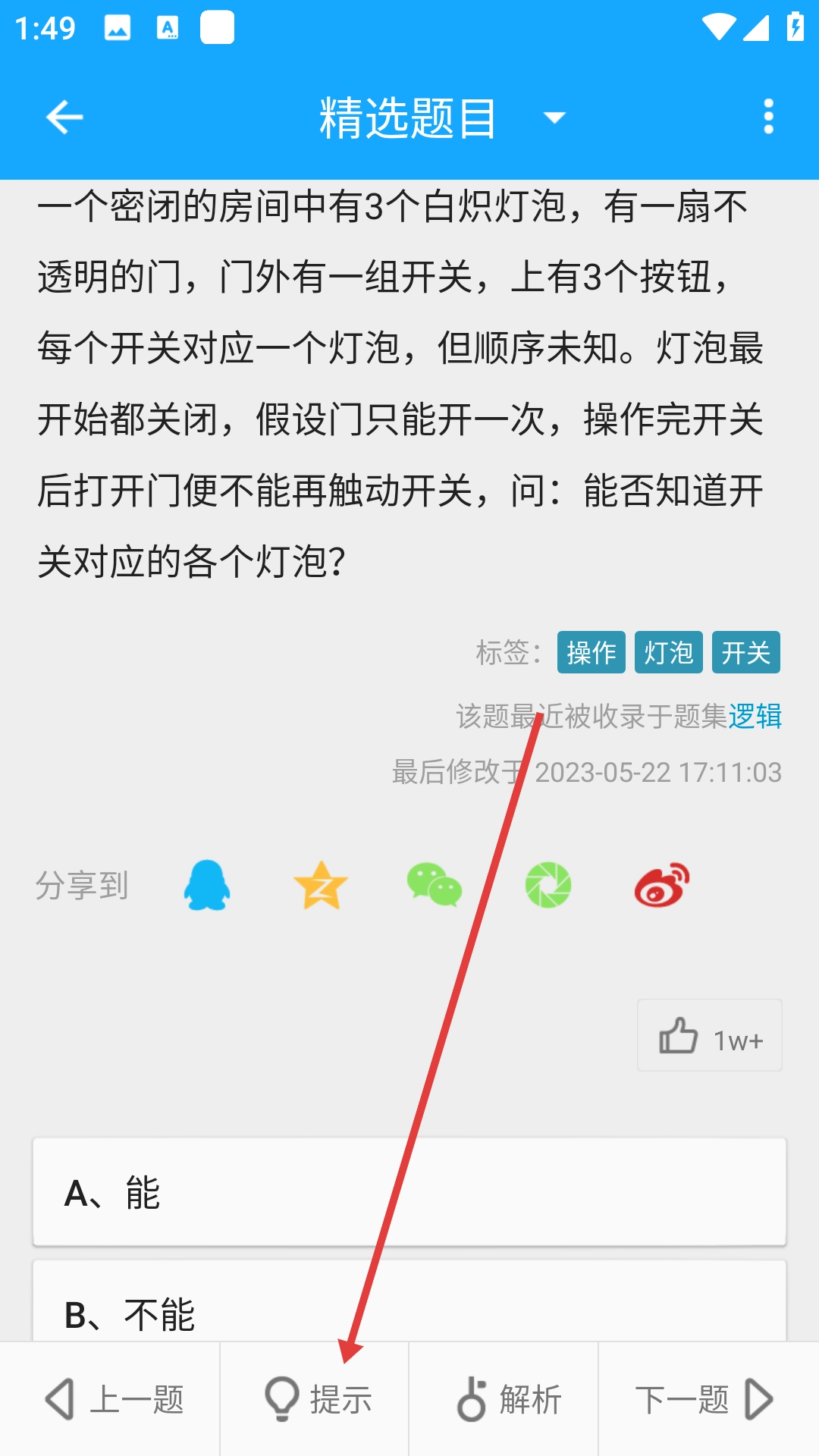 在题目页面找到并点击【提示】按钮,就能查看题目相关的提示信息,这些信息可以帮助你更好地解答题目。