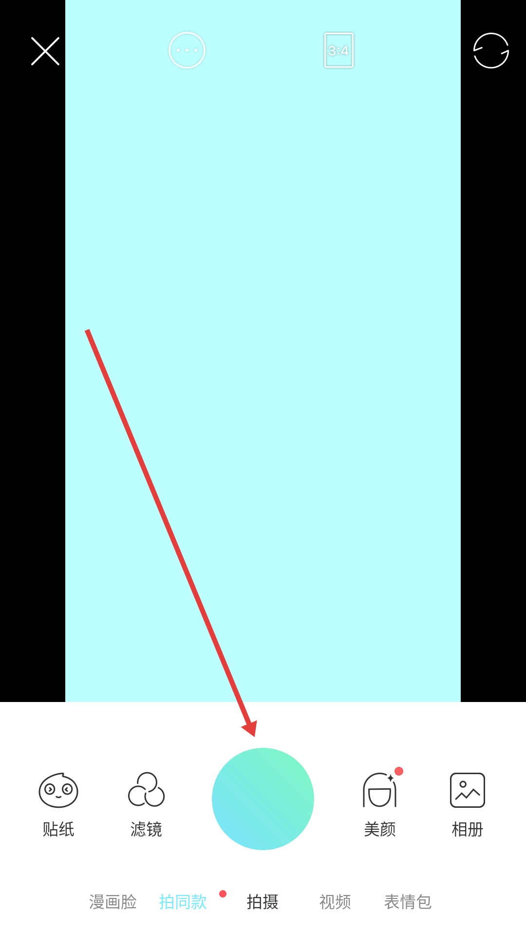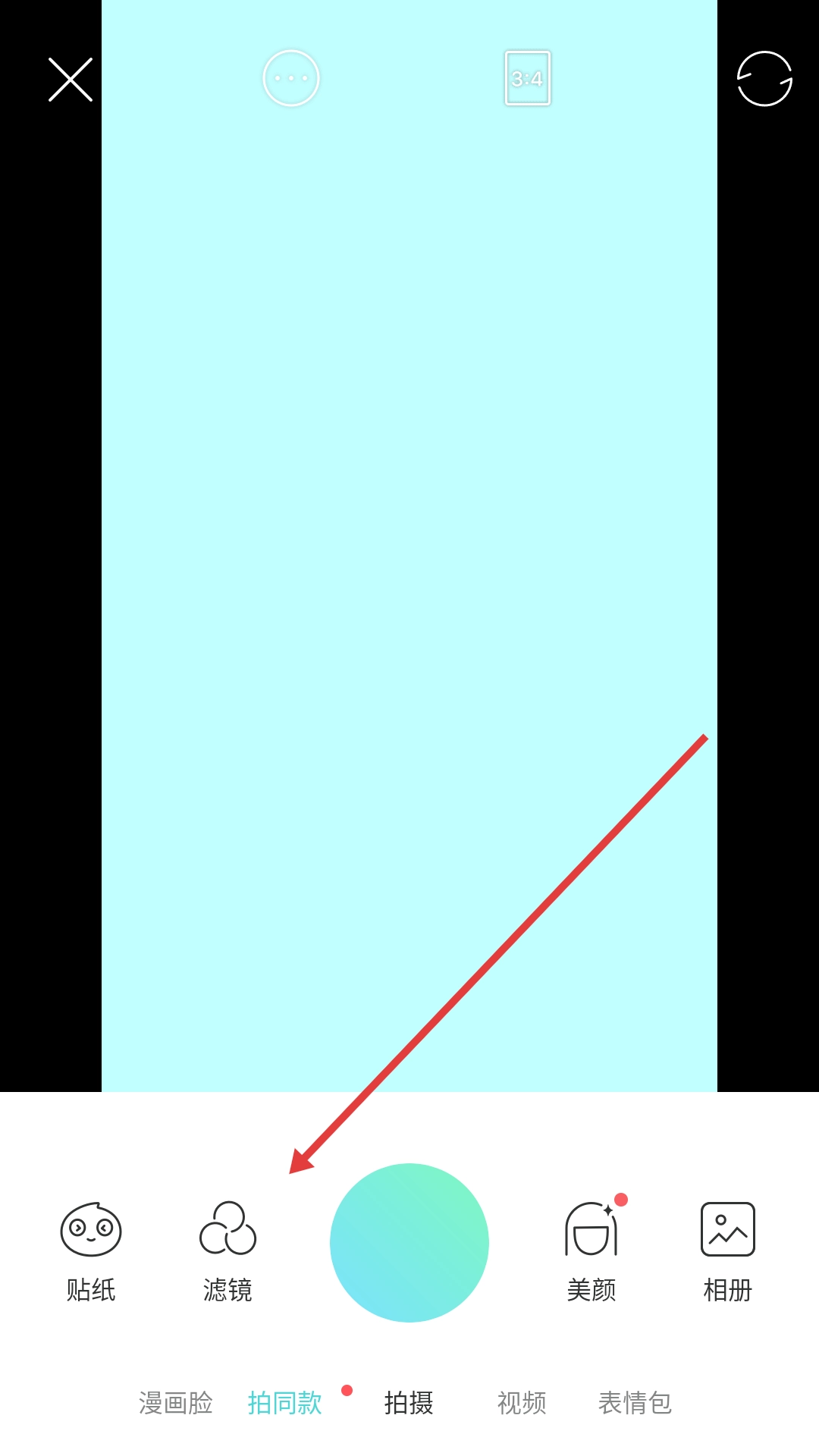 点击底部相机按钮,进入拍摄界面。