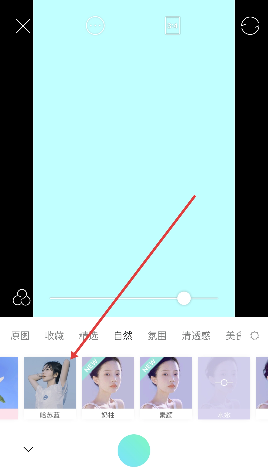 在滤镜选择页面选择喜欢的滤镜(如哈苏蓝)。