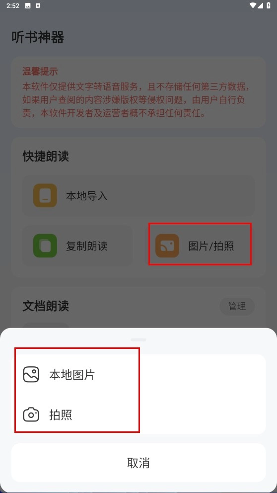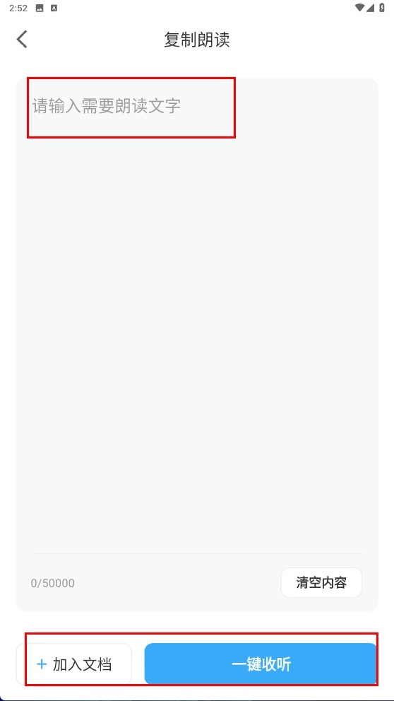 在输入框中输入想要朗读的文字后,你可以选择点击【加入文档】,再点击【一键收听】。