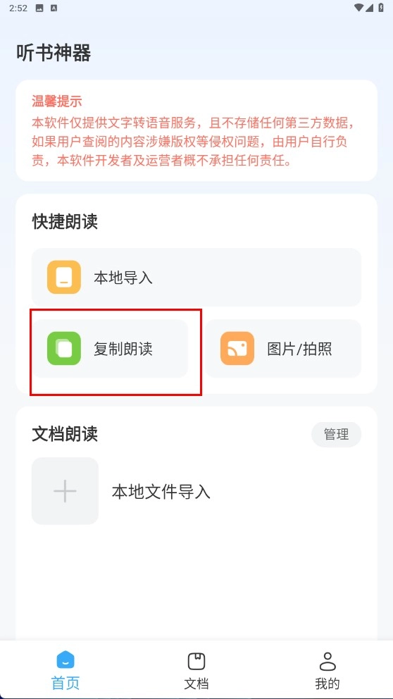 点击【复制朗读-功能按钮】,进入文字输入页面。