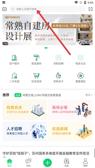 点击页面顶部的搜索栏,输入你想查找的关键字,比如“自建房”,就能启动信息检索功能了。