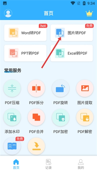 进入【图片转PDF】界面后,点击【开始转换】按钮,就能开启图片到PDF的转换流程。