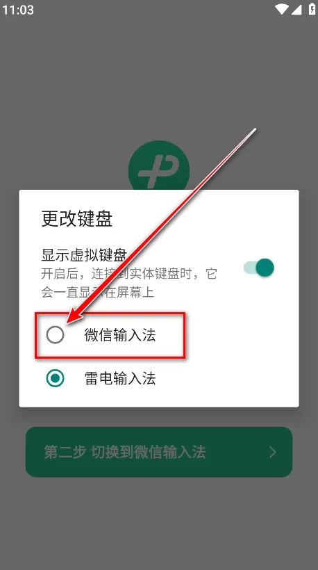 5.选择微信输入法。