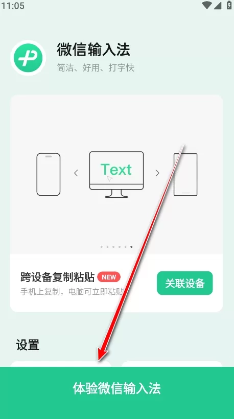 1. 开启微信输入法,接着点击“体验微信输入法” 。