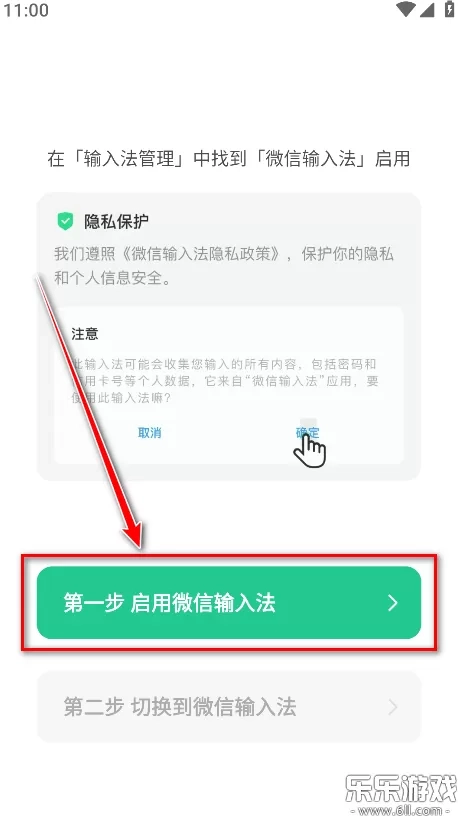 1.打开微信输入法,点击第一步 启用微信输入法。