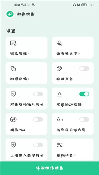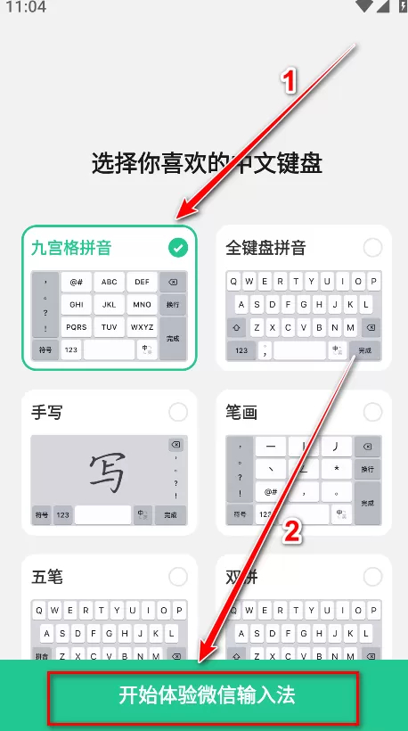 6. 自行定制挑选心仪的键盘,接着点击“开始体验微信输入法”便可。