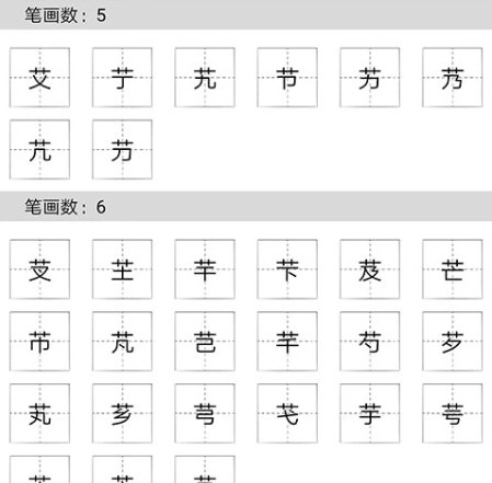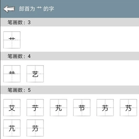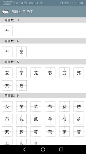 进入相同部首的笔画选择界面后,依据所需查询的笔画来筛选对应的汉字