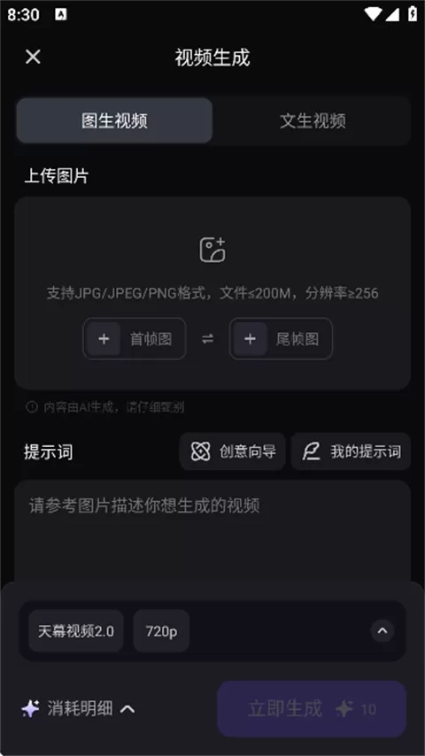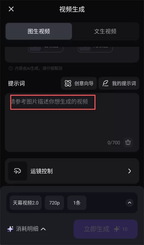 2、平台支持“文生视频”和“图生视频”两种创作模式,可根据需求自由选择,满足不同场景下的内容生成需求。