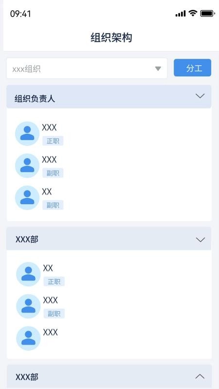 在组织架构功能模块里,用户能够查询到各组织部门的工作人员相关信息,这便于大家查找工作人员并进行办公联系。