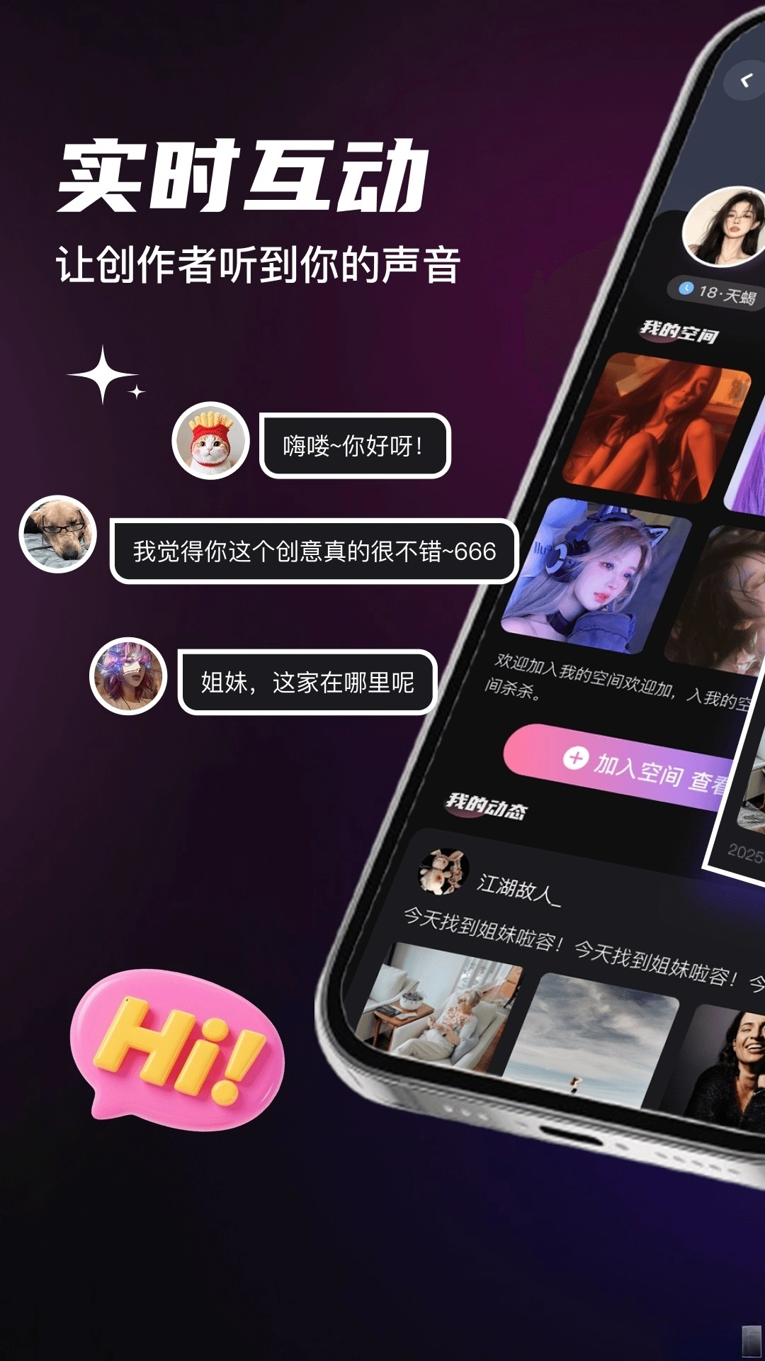 《妙空间》是为创作者和粉丝量身打造的互动社区。在这里,粉丝可以打破传统的距离感,和心仪的创作者建立更紧密的联系,及时了解创作者的最新动态,获取专属内容,领略创作的独特魅力,开启一段与众不同的互动体验,是创作者与粉丝之间交流沟通的优质平台。