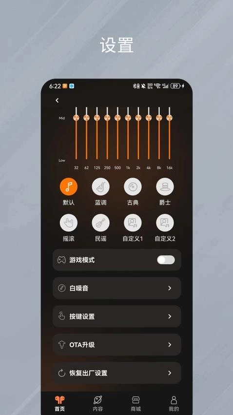 具备EQ调节功能,能够在线对蓝牙耳机的音质效果进行设置。