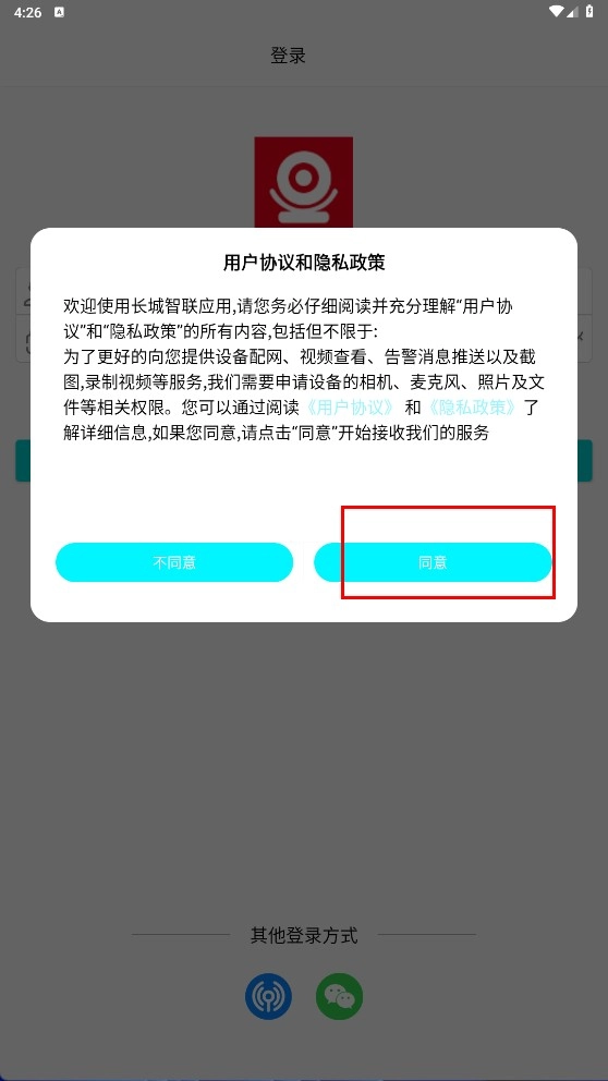 首次使用该服务时,请仔细阅读【用户协议和隐私政策】,确认无误后点击“同意”按钮,并授权相机、麦克风等必要权限,即可开启服务。
