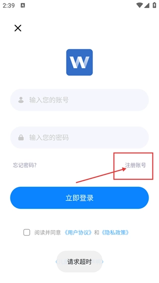 在账号密码登录页面,若没有账号,可点击【注册账号】按钮进入注册流程;若忘记密码,也可通过“忘记密码”功能找回账号。
