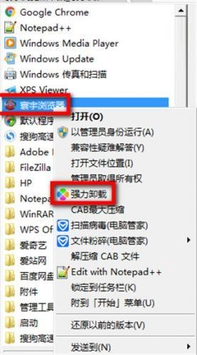 2、进入所有程序页后,需要你找到【寰宇浏览器】并右键选择【强力卸载】然后点击它