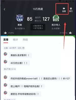 3、进入界面后,点击【想要观看的直播】进入,进入直播界面后,点击右上角直播,即可【看到直播内容】了。