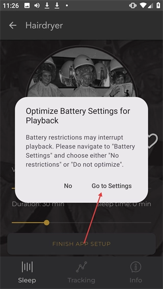 在“OptimizeBatterySettingsforPlayback”弹窗里,点击“GotoSettings”按钮。