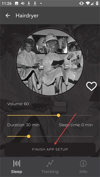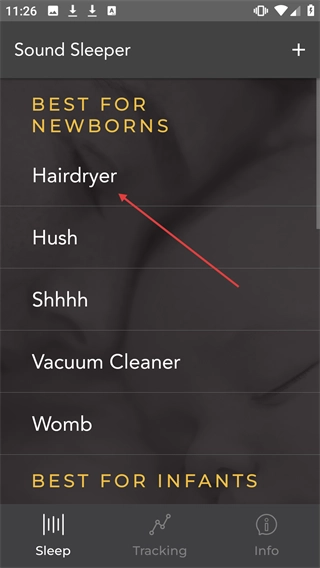 在SoundSleeper应用的声音列表里,点击“Hairdryer”这个选项。