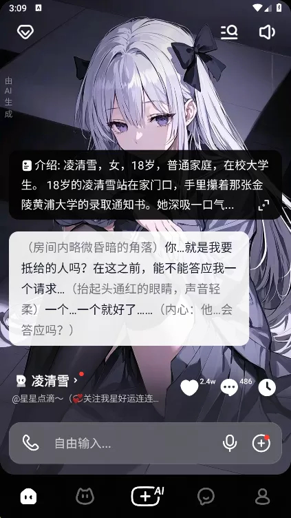 揭开「猫箱」的神秘面纱,与心动AI一同畅游剧情宇宙。沉浸式地与那些个性独特、背景多元的虚拟AI角色畅聊互动,谱写只属于你们的精彩故事。
