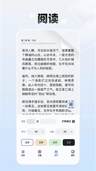 流畅舒适的界面,背景颜色主题的切换,字体/字号的随意变换给你无与伦比的阅读享受
