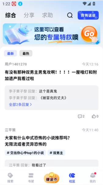 4、在社区界面下,我们可以和一众书友进行小说剧情讨论。