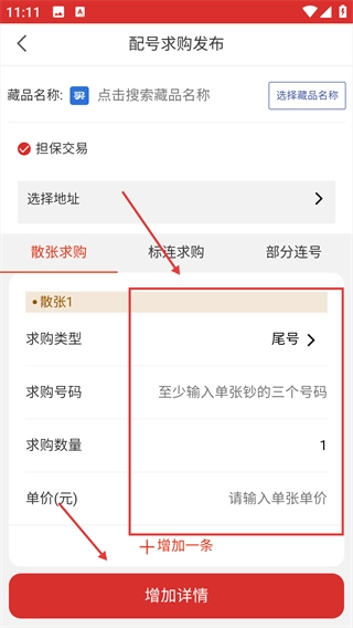 请依次填写藏品名称、求购号码、求购数量、单价等相关信息,所有信息填写完毕后,即可完成发布流程。