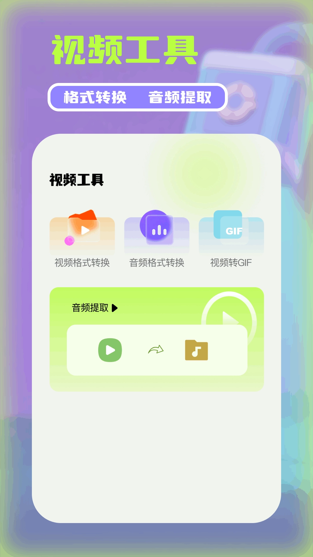 这款视频工具的核心功能自然是处理视频,在这里你能实现不同视频格式的相互转换,同时还可以提取视频中的音频并进行格式转换,甚至支持将视频制作成GIF动图。