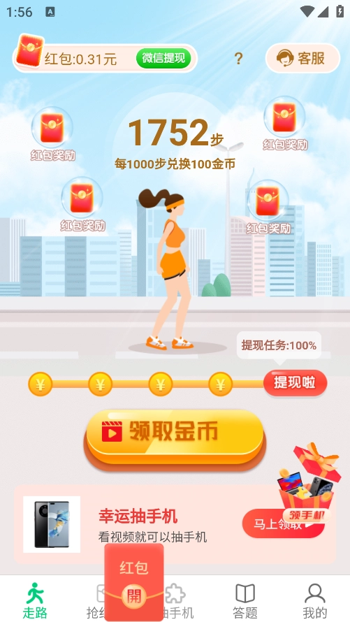 同时我们也能通过参与幸运转盘和抽红包的活动来获取金币。